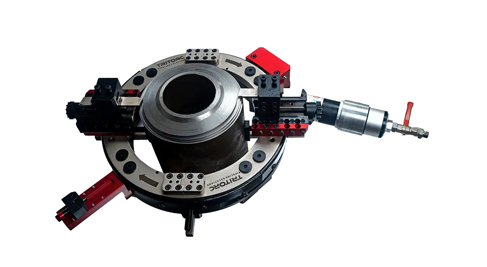 Tritorc’s TSF Series is a robust, split-frame solution tailored for manufacturers and heavy industries such as oil & gas, petrochemical, and construction. Designed for secure OD mounting, it enables simultaneous, spark-free pipe cutting and beveling in restricted areas. Supporting various bevel profiles and automatic feed, TSF models accommodate pipes from 2″ to 72″, providing specialized, high-precision performance for demanding industrial applications.